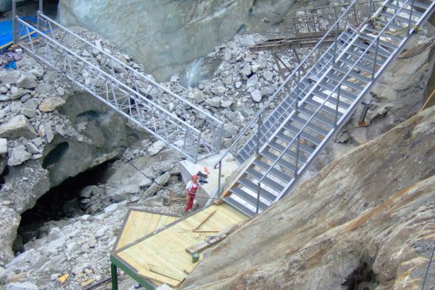 - Grotte de la Mer de Glace (Massif du Mont-Blanc) : réalisation d’une passerelle.